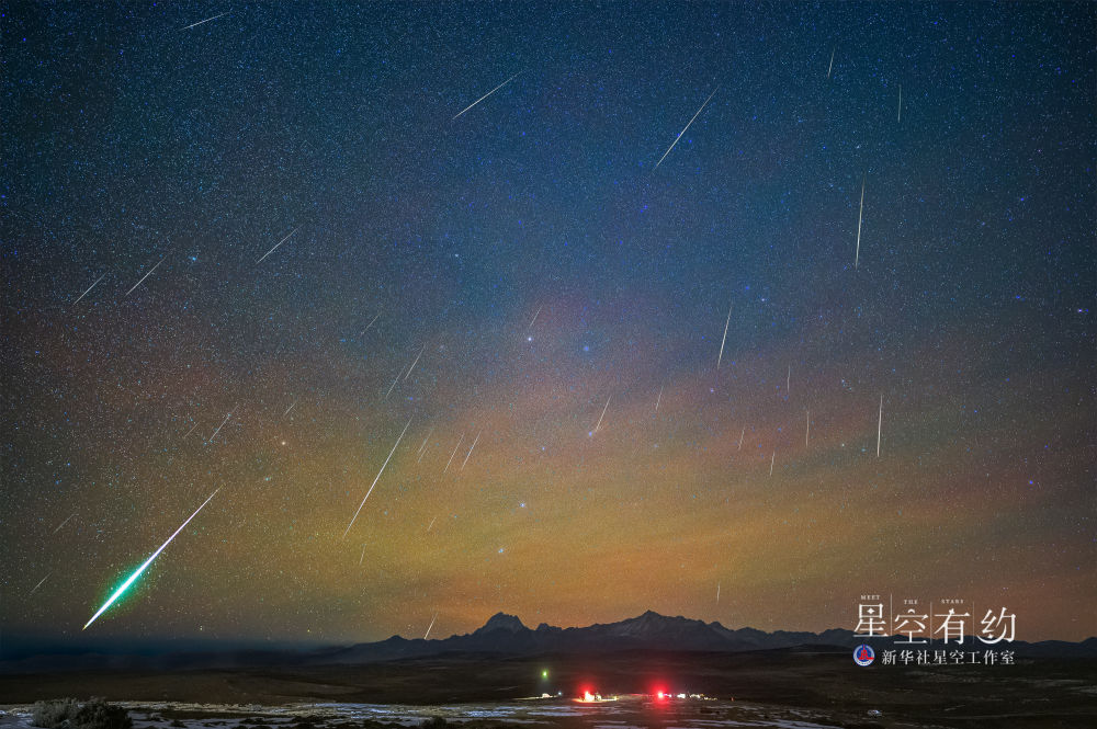 四川省天文爱好者蒋涛2020年12月14日在四川甘孜州鱼子西拍摄的双子座流星雨。(星联CSVA供图)