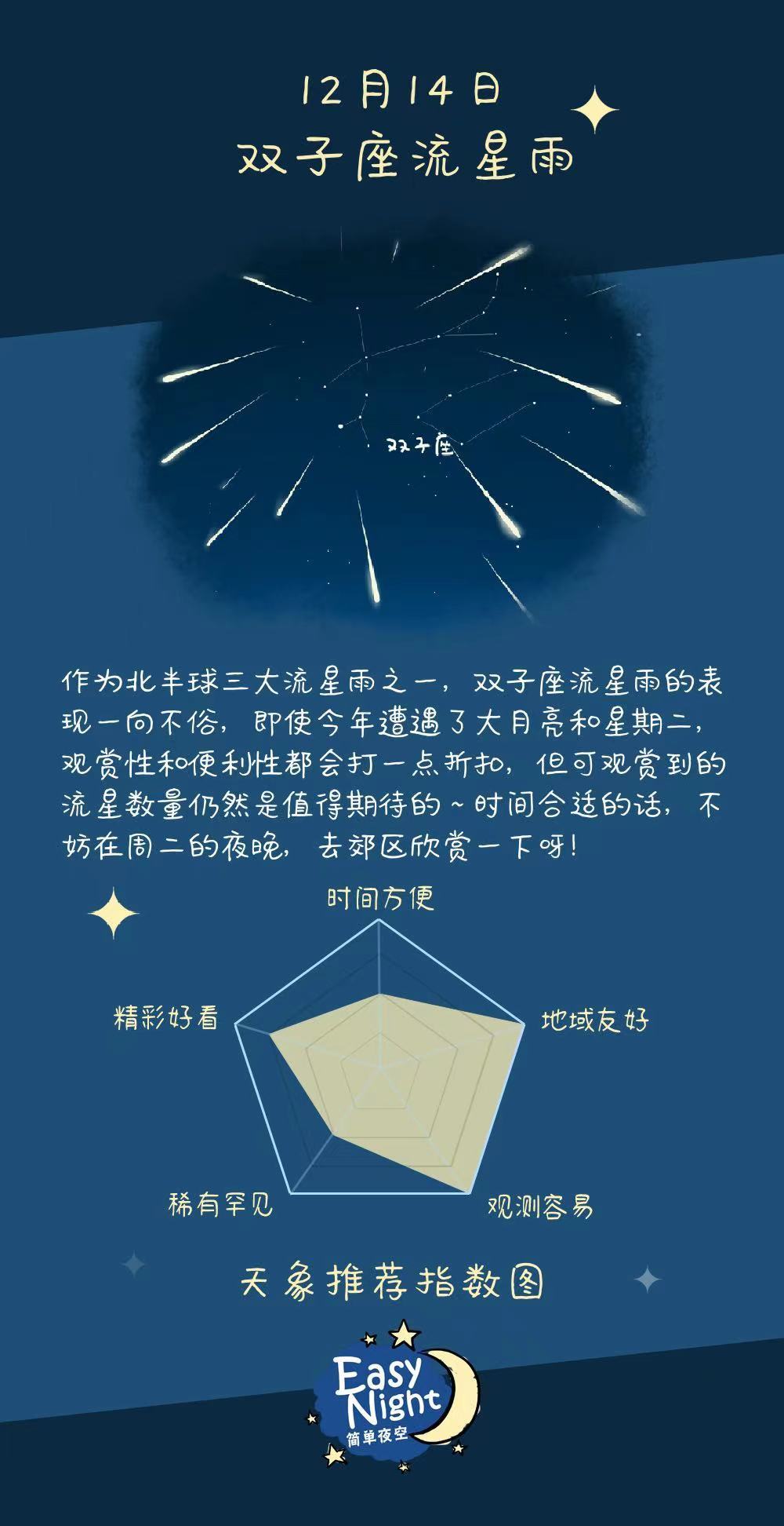 双子座流星雨推荐指数图。(作者:天文科普漫画博主EasyNight)