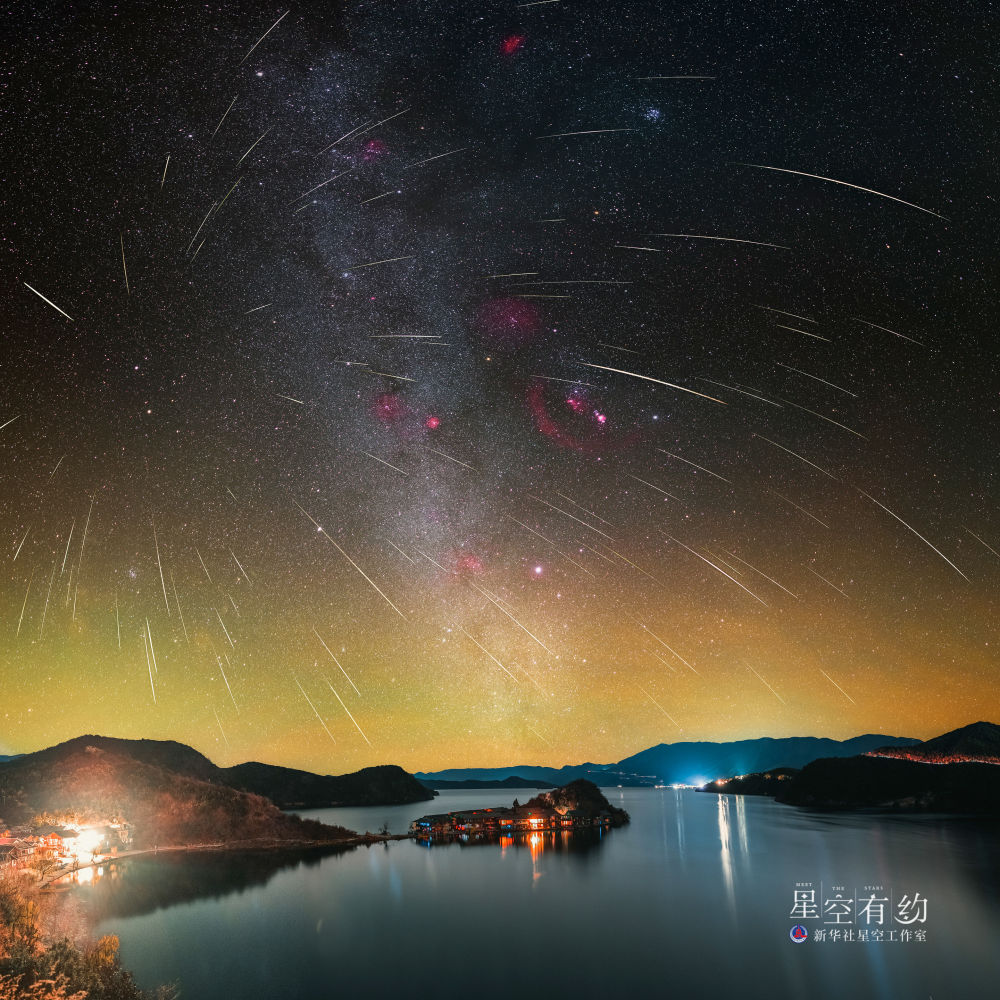 安徽省天文爱好者何宏程2020年12月14日在云南泸沽湖拍摄的双子座流星雨。(星联CSVA供图)