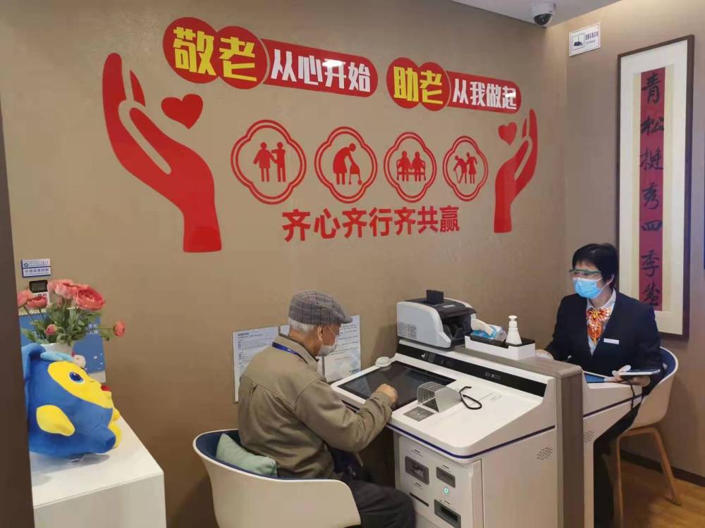 对不同年龄段的老人,建行北京市分行设计了不同的沟通语速、语调,并定期开展演练,各岗位员工服务动作放慢、语速适当减缓、多一些温馨笑容,柜台柜员做到声音大一些、提示多一些、服务暖一些。“适老服务示范网点”的入门处,均设有为方便老年人进入的无障碍通道;走进网点后,有服务专员礼貌接待、引导老年人到“暖阳爱心窗口”办理业务;与爱心窗口配套的还有暖阳爱心座椅、轮椅容膝柜台、移动填单台等。针对老年客户的视听能力下降,反应迟缓等情况,在原有“劳动者港湾”服务设施的基础上,添置沟通手写板、振动叫号器、智能放大镜、大字版计算器、大字版点钞机、血压仪等助老设施;为方便听力有障碍的老年客户与银行工作人员交流,营业网点配置了“远程在线手语翻译”,协助老年客户完成业务办理;设计制作了方便老年人记录每次现金支取情况的专属现金袋、大字版金融知识宣传折页、大字版智慧柜面机服务操作手册,协助老年客户在网点办理业务,享受更为贴心的金融服务。同时,建行北京市分行首创推出坐式智慧柜员机(STM)率先配置在中关村分行下辖齐园路支行,网点工作人员和老年客户对面而坐,实现了分屏同步指导,既有效规避了代客操作风险,又保护了老年客户的隐私安全。