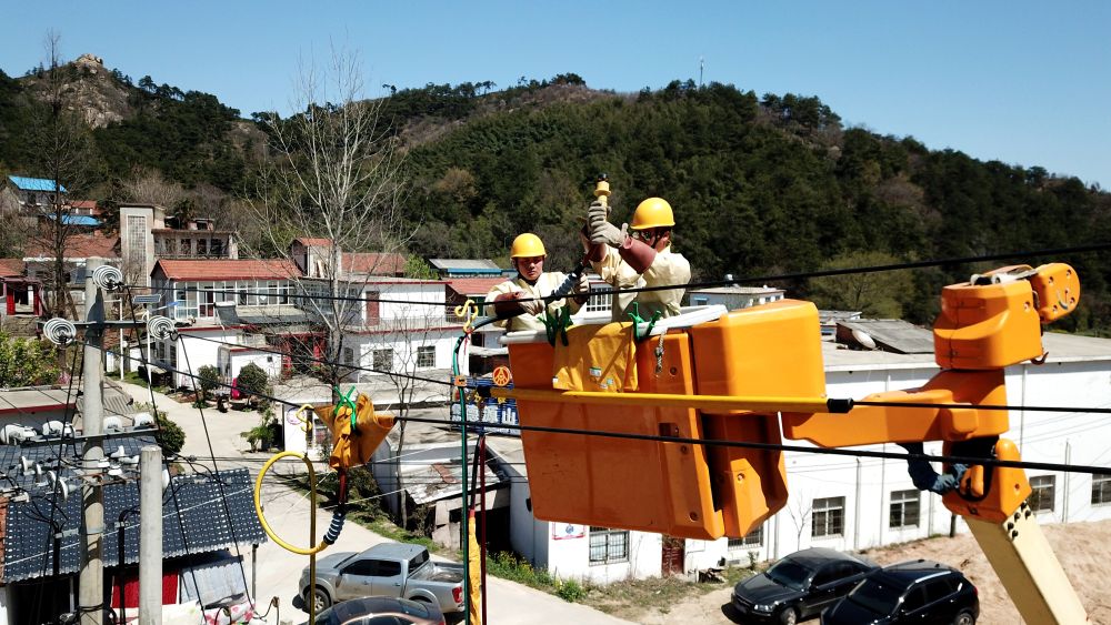 图为国网信阳供电公司在大别山革命老区开展电网不停电作业