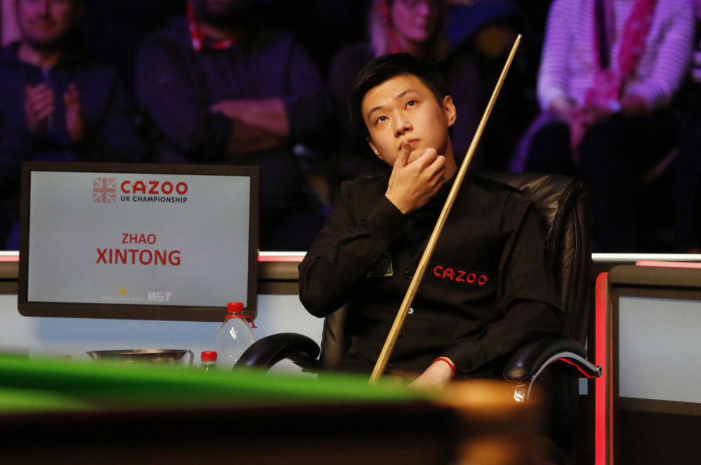 12月4日,中国选手赵心童在英锦赛比赛中。新华社发(埃德·赛克斯摄)
