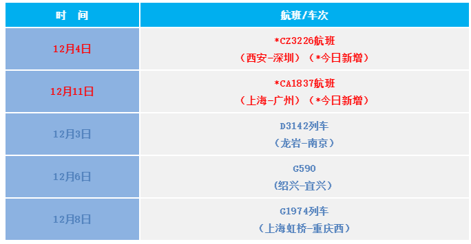 搭乘过以下交通工具的来(返)川人员,第一时间主动向社区或居(村)委会、单位或入住酒店报备旅居史,配合做好相关防控工作。