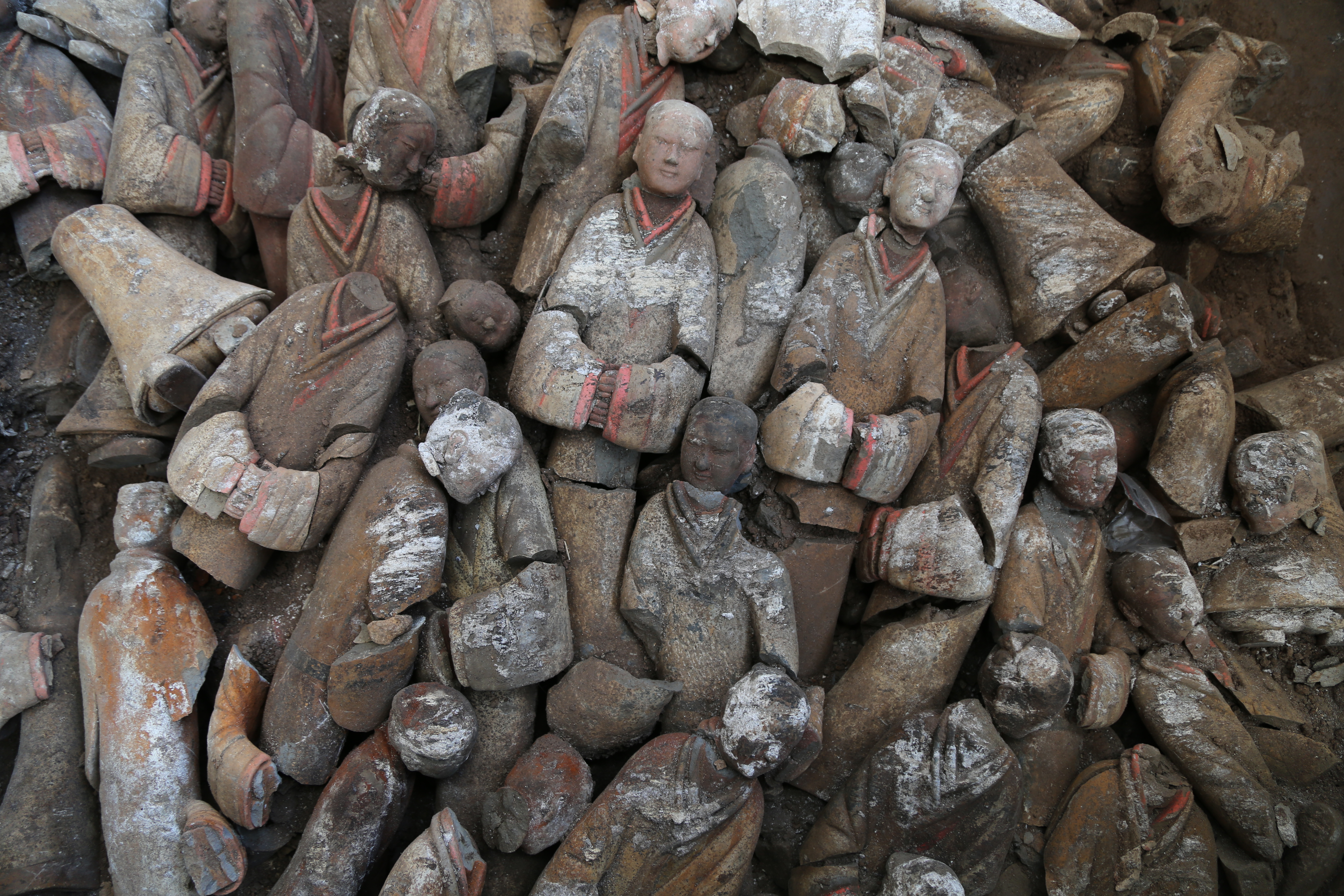 这是这次考古发现的彩绘陶俑。陕西省考古研究院供图