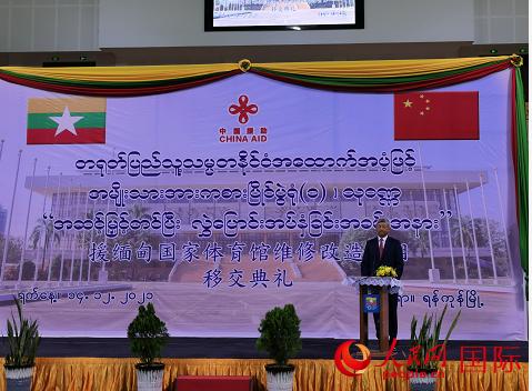 中国驻缅甸大使陈海在移交典礼上致辞,向体育馆维修改造项目竣工交付使用表示祝贺,向参与项目实施的两国人员和长期支持两国友好交流的人士表示感谢。他说,体育是人类社会的共同爱好,是社会发展和人类进步的重要标志。有了崭新的体育场馆,缅甸人民和体育健儿可以在这里强健体魄、训练备战,也为缅甸举办各种赛事活动创造了条件。2022年中国将主办第24届冬奥会和第19届亚运会。目前,北京冬奥会赛事准备工作已基本就绪,国际社会高度认可中方筹办工作,各国运动员热切期待赴华参赛。中国有信心也有能力秉持绿色、共享、开放、廉洁的理念,同国际奥委会和各国一道,展现更加团结的奥林匹克精神,为世界呈现一届简约、安全、精彩的奥运盛会,共同推动国际奥林匹克事业的发展,为构建人类命运共同体作出新贡献。中方高度重视中缅两国体育领域合作,愿通过培训体育人才,提供训练器材和分享经验等方式进一步加强交流,推动中缅体育领域合作深入开展。