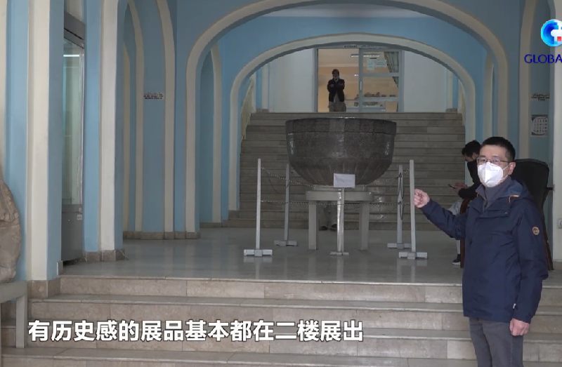 新华社记者在阿富汗国家博物馆采访。视频截图
