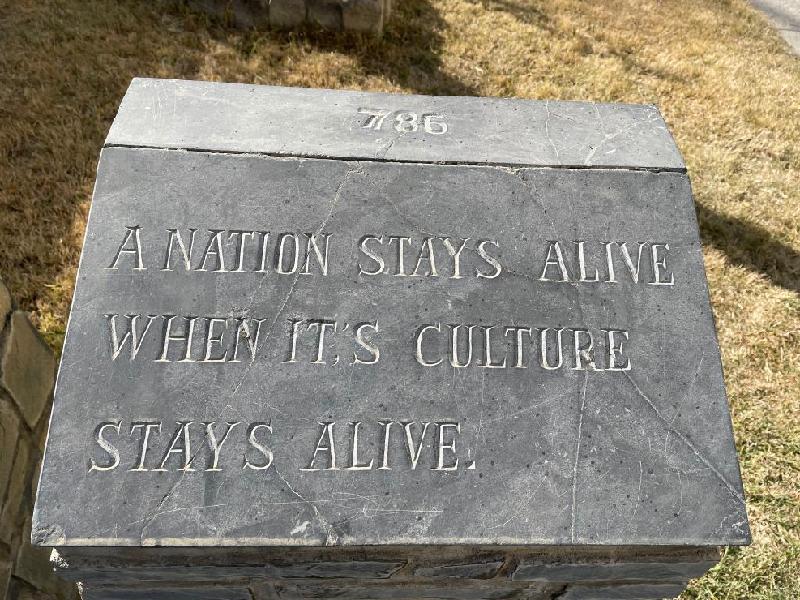 主楼入口处的石碑上,刻有英文“A nation stays alive when its culture stays alive”,意为“文化兴则国家存”。今年阿富汗局势几经起伏,这句话格外令人感慨。