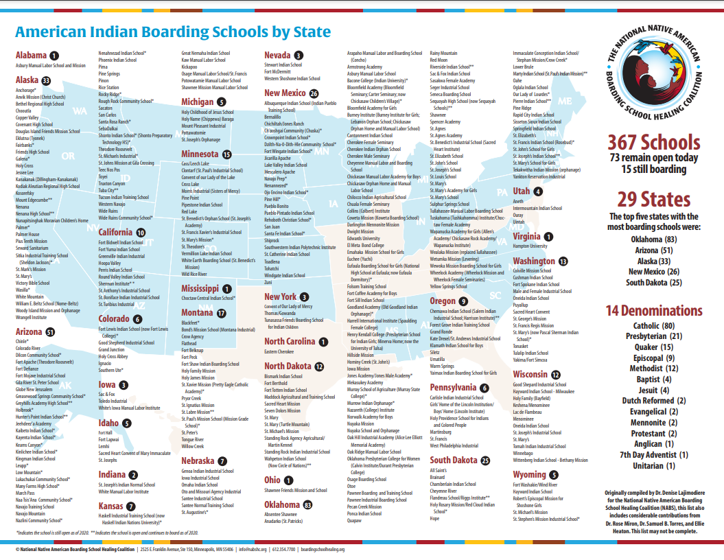 美国印第安寄宿学校分布情况(来源:美国全国土著居民寄宿学校治愈联盟网站)