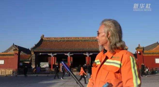 在沈阳故宫红墙的印衬下,杨俊山扛起扫帚扫除归来,画面俨然是一张时尚大片。杨大爷从没想过,自己的造型会引来人们的关注。因为喜欢留长发、蓄胡须,所以从年轻时开始,不论做买卖、做木匠活还是做环卫工,他都保持着自己的这个小习惯。杨大爷的帅气,并不是为了蹭流量而刻意凹造型,而是源自他一直以来对自我的关注和尊重。面对采访镜头,杨大爷毫不怯场,说:“如果别人因为我的造型关注到环卫这个职业,那我很开心。环卫工人是城市美容师,是伟大的职业,我不觉得辛苦。只想在自己能干得动的时候多奉献一些。”