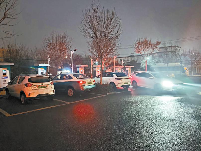 这时候,雨夹雪渐渐停了。早起的新能源车主,开着车一辆一辆进场。可供他们等待的空位,只有两三个。
