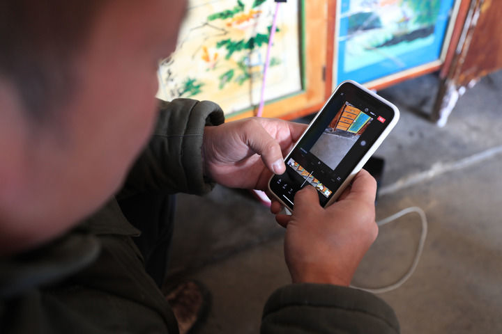 12月8日,在辽宁省大石桥市建一镇松树村,张同学在家中准备拍摄短视频。