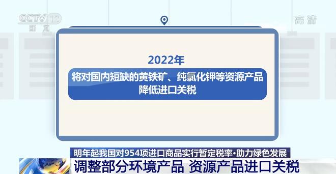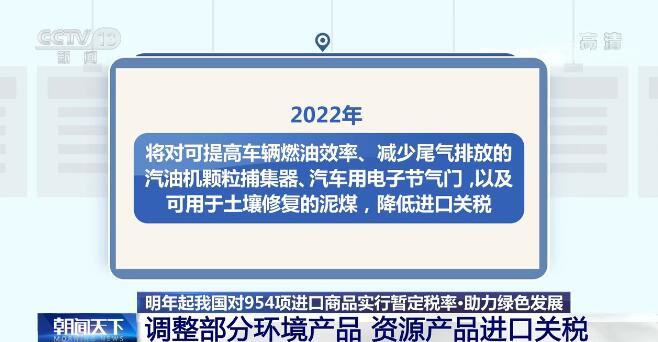 这900多项进口商品中,也有不少针对绿色发展和国内资源保供。2022年将对可提高车辆燃油效率、减少尾气排放的汽油机颗粒捕集器、汽车用电子节气门以及可用于土壤修复的泥煤,降低进口关税。这些主要是为了改善环境质量,推动绿色低碳发展。2022年,还将对国内短缺的黄铁矿、纯氯化钾等资源产品,降低进口关税。这则是为了缓解国内资源约束突出的问题。