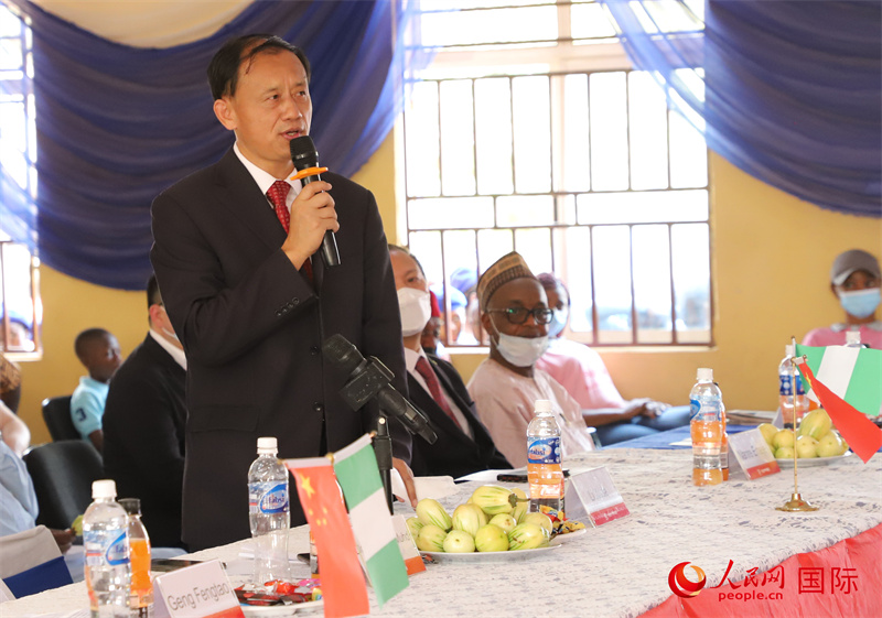 | 驻尼日利亚使馆文化参赞李旭大致辞。人民网记者 姜宣摄 |