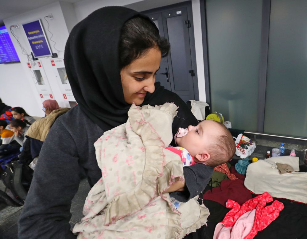 11月25日,滞留在白俄罗斯的伊拉克人在明斯克国际机场等待航班。新华社发(任科夫摄)