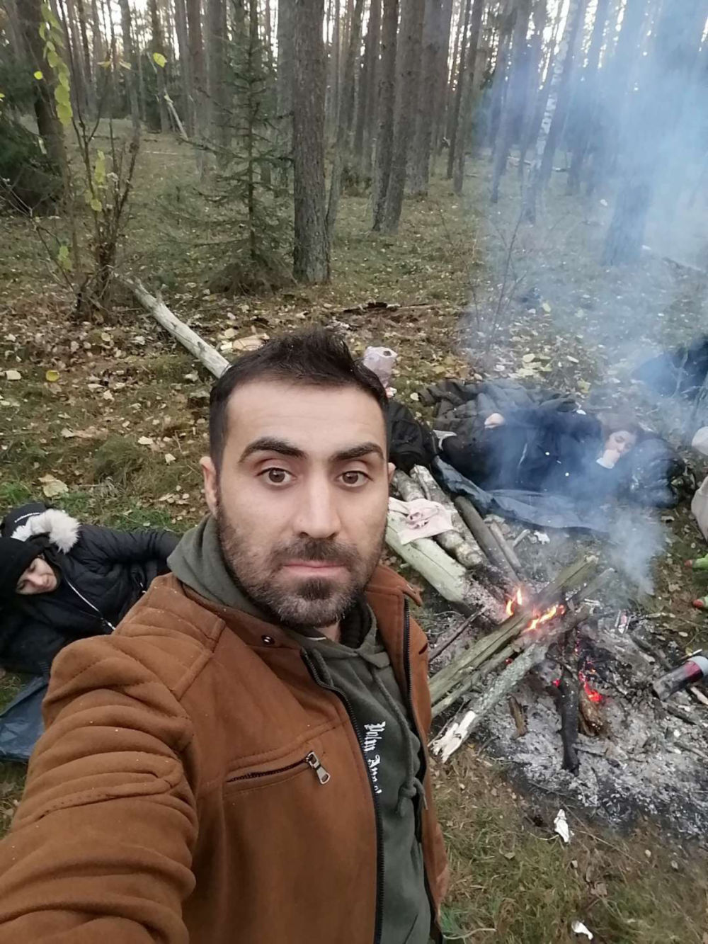 阿拉姆·马吉德·萨比尔与其他伊拉克人困在白俄边境的森林中。(受访者供图)