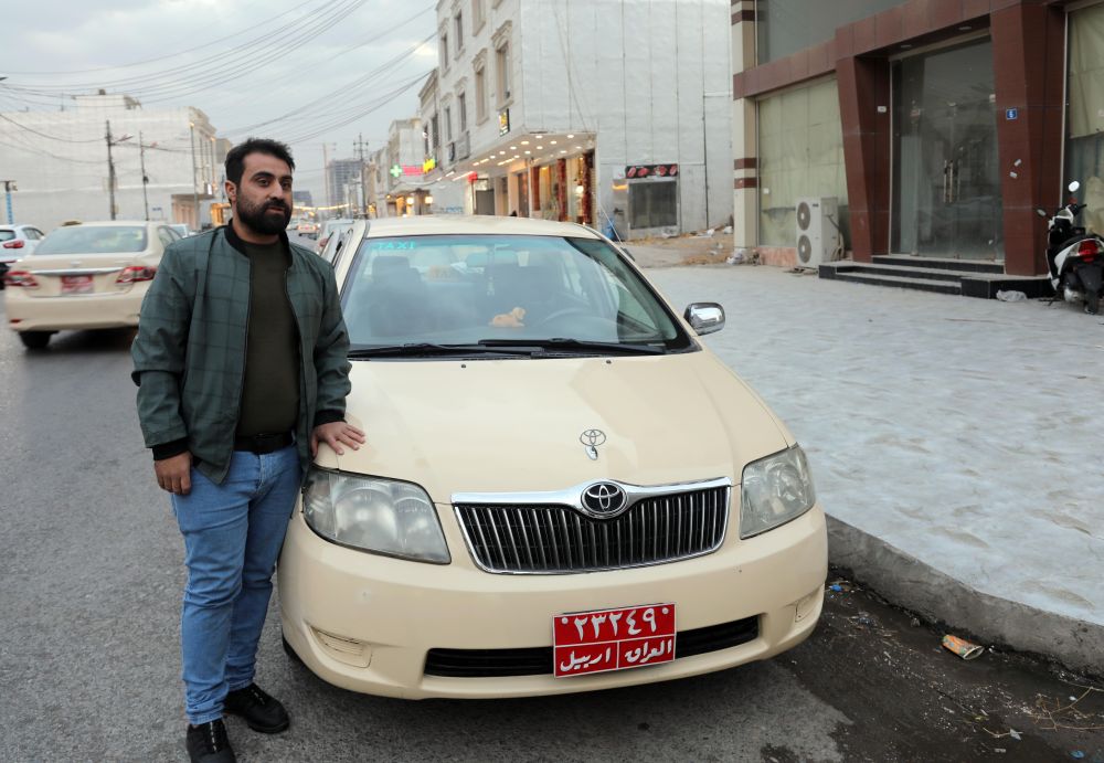 12月1日,在伊拉克埃尔比勒,阿拉姆·马吉德·萨比尔站在自己的出租车前。哈利勒摄