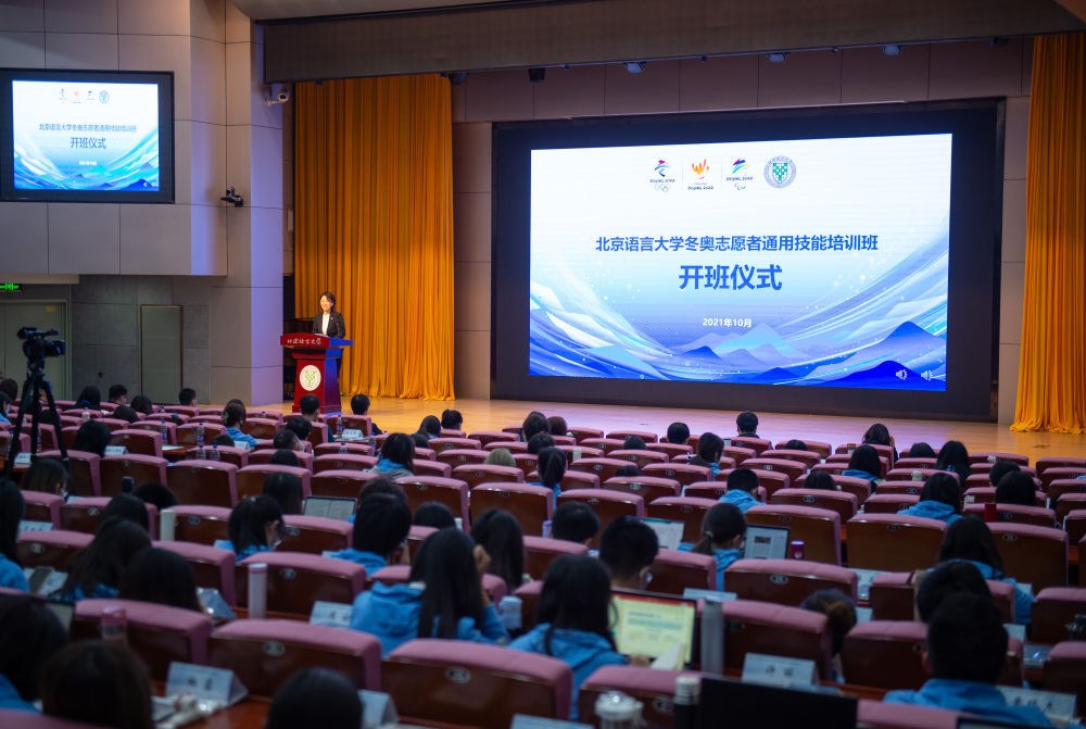 图为北京语言大学开展冬奥会志愿者通用技能培训开班仪式现场。新华社记者 陈钟昊 摄