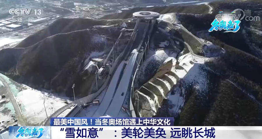 在张家口赛区的国家跳台滑雪中心,跳台剖面与中国传统吉祥饰物“如意”的S形曲线相契合。这里将承担跳台滑雪、北欧两项的比赛。“雪如意”里还藏有一个“彩蛋”,那就是运动员在起点处可远眺明长城遗迹。“雪如意”身旁的C字形弯道则如同一只灵动的“冰玉环”,无处不体现中国式的浪漫。