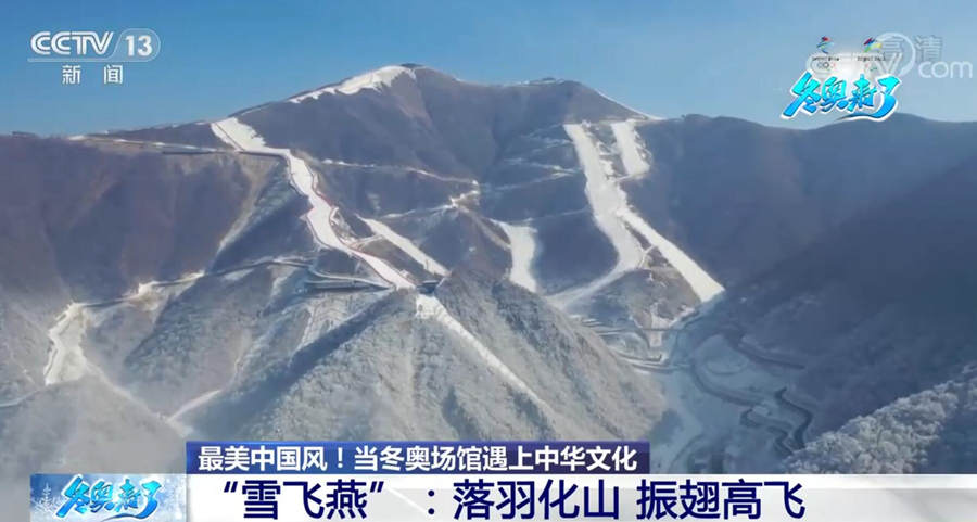 距离“雪游龙”不远处的国家高山滑雪中心,赛道垂直落差900余米,坡面长度约3000米,海拔2198米的山顶出发平台远远望去如同一只振翅欲飞的“雪飞燕”。“雪”代表了冬奥元素,“飞燕”蕴含着中国传统的吉祥寓意,“雪飞燕”可以说是冬奥文化和传统文化在延庆赛区的精彩结合。