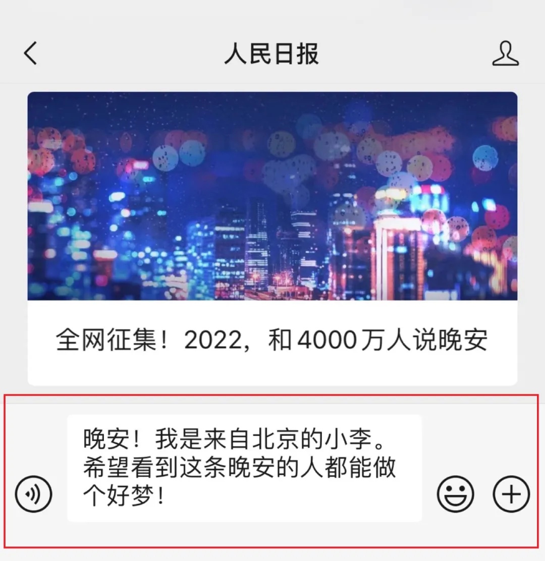在输入框内回复“晚安”+一段晚安心语,即可参与活动