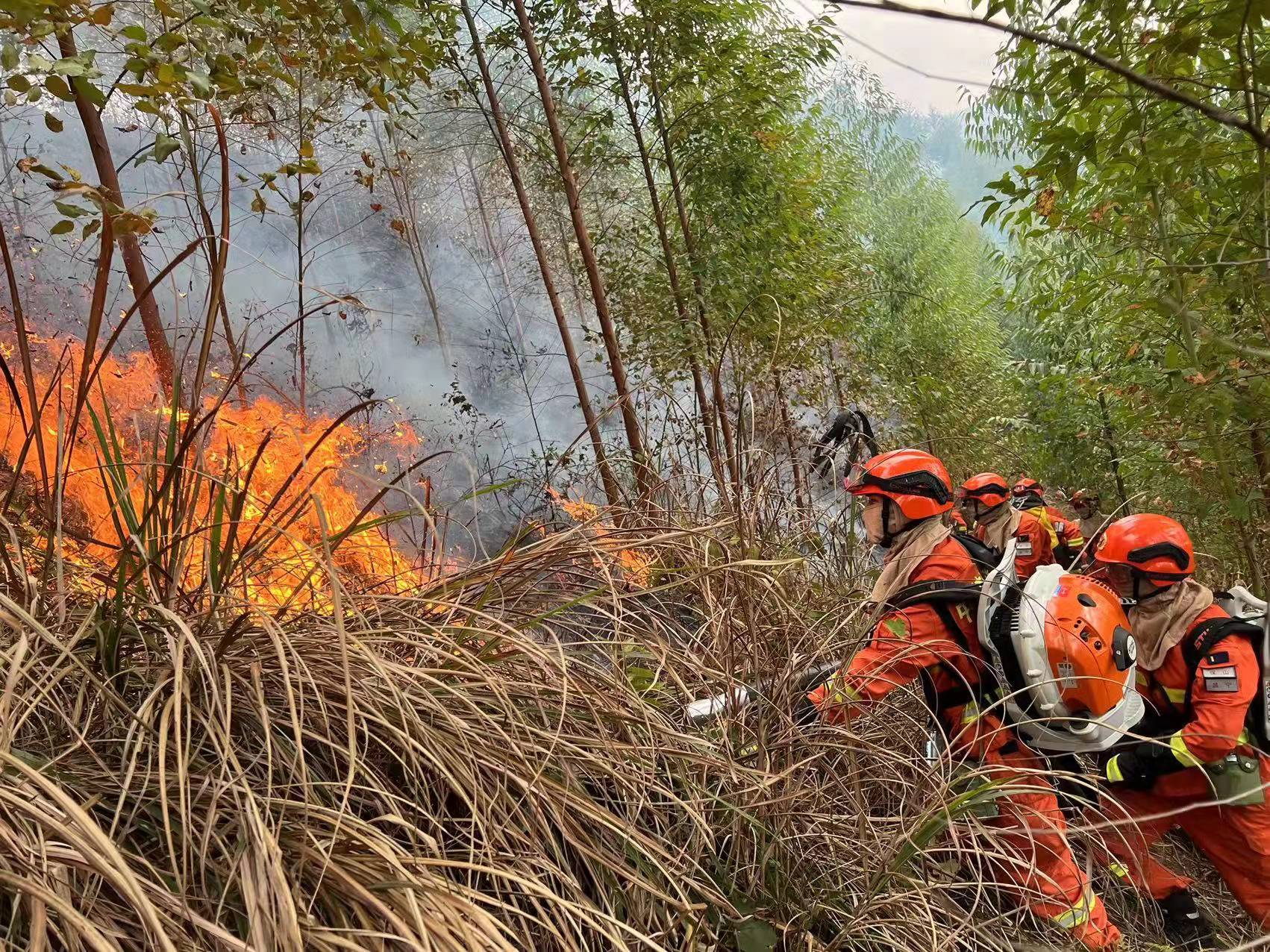 云南森林消防驻广西桂林队伍指战员正在进行火灾扑救 图片来源:云南森林消防总队