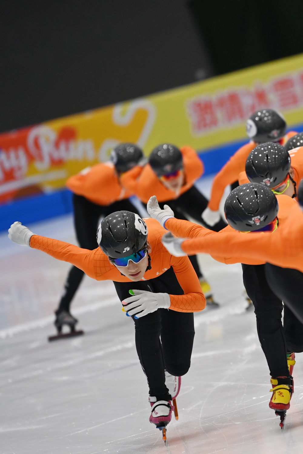 ↑12月16日,在天津蓟州国家冰上项目训练基地,运动员进行滑冰示范。