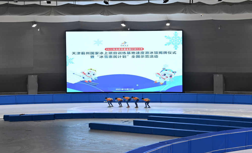 在北京冬奥会开幕倒计时50天之际,天津蓟州国家冰上项目训练基地速度滑冰馆揭牌仪式暨“冰雪惠民计划”全国示范活动启动,2021年全国高校冰壶联赛也在此开幕。据了解,位于天津北部蓟州山区的天津蓟州国家冰上项目训练基地是我国规模最大、项目最全的国家冰上训练基地之一,可为国家队冰上项目集训提供有力的场馆服务保障。各场馆正式投入使用后,在满足专业冰雪运动员训练需求的同时,还将逐步为京津冀地区居民提供体育健身场所。