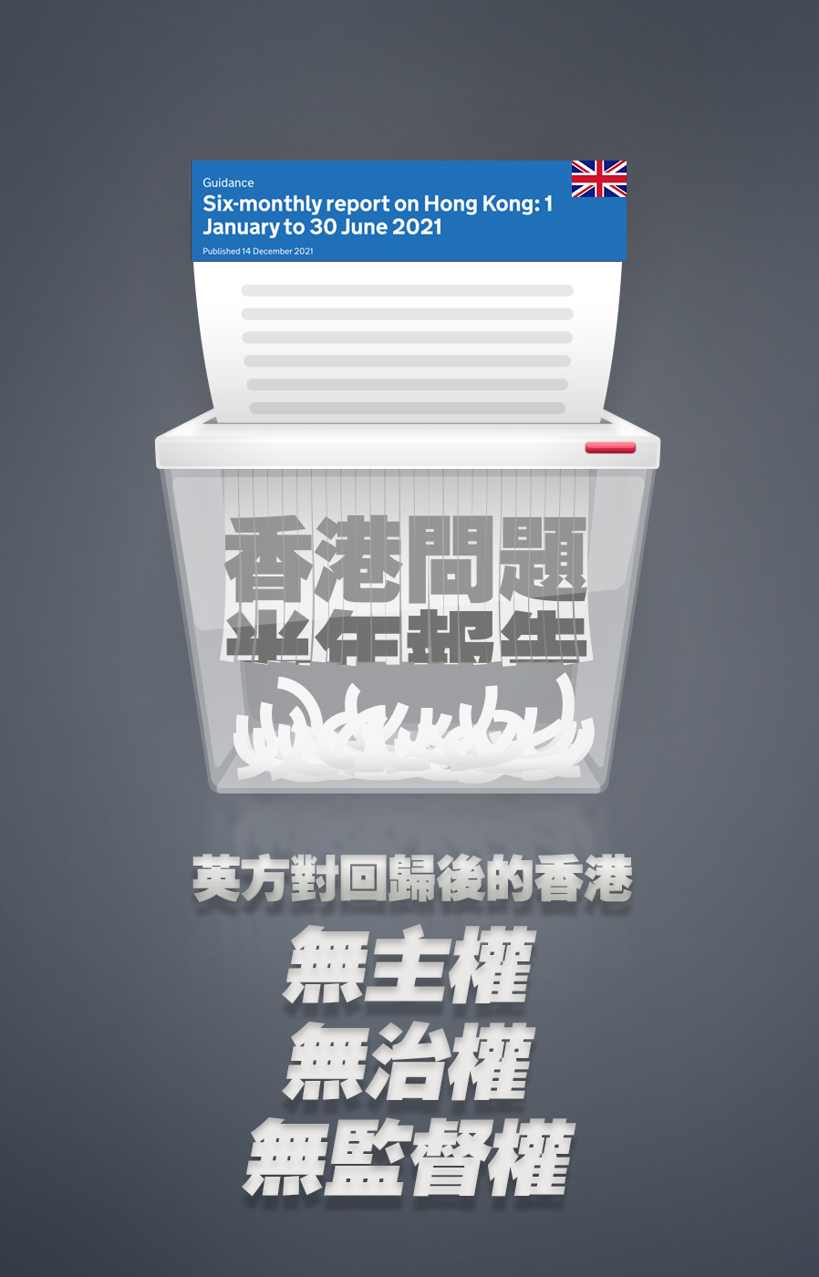 日前,英国政府发表所谓“香港问题半年报告”,恶意抹黑香港国安法和香港选举制度。英国外交大臣更妄称“我们有责任挺身而出”。相关表态公然诋毁“一国两制”成功实践,严重践踏包括“不干涉别国内政”在内的国际准则,为正义人士所不齿。