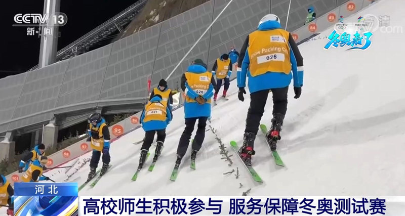 12月初,在张家口赛区古杨树场馆群举行的2021至2022国际雪联跳台滑雪和北欧两项洲际杯上,河北体育学院教师刘烁的团队要在运动员空中滑行着陆后,迅速对着陆地区的雪道进行清理和平整,确保比赛安全顺利进行。