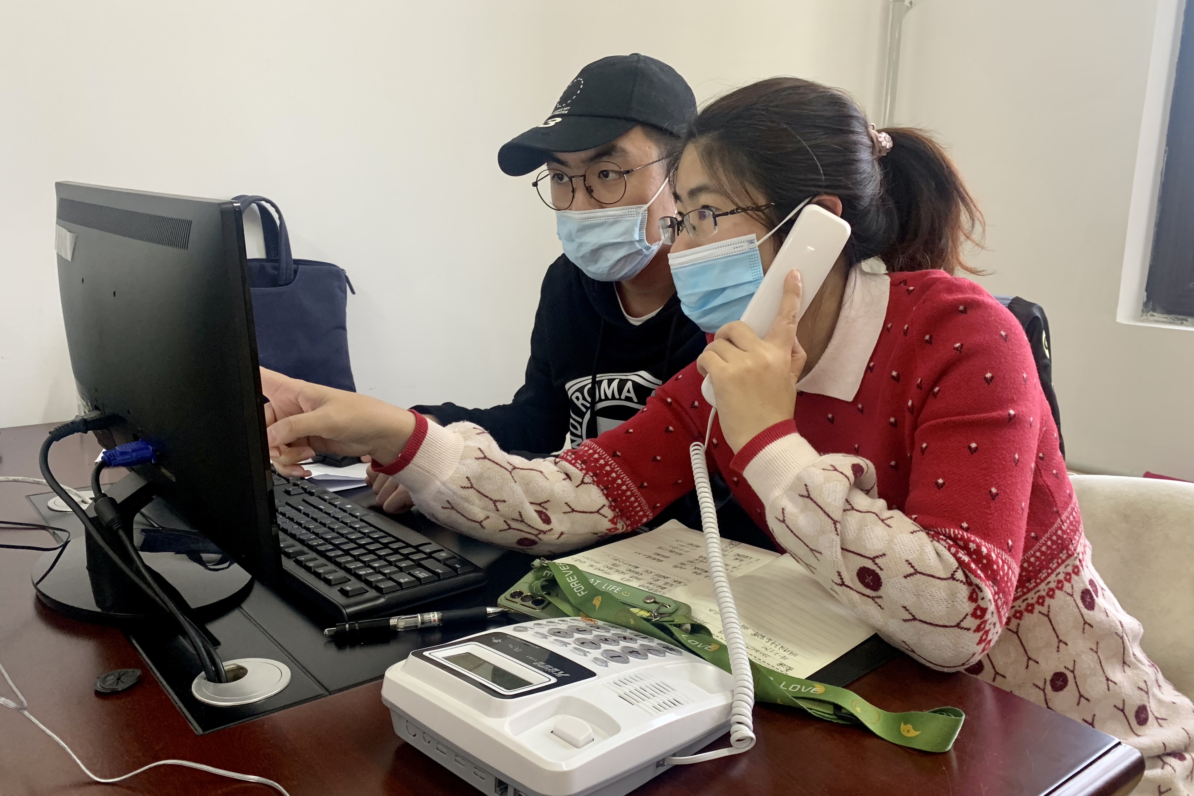 12月11日,王岗镇数据组工作人员进行流调工作。(受访者供图)