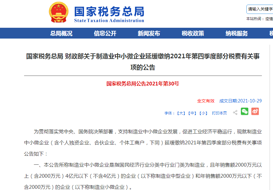 为支持中小微企业纾困发展,国务院常务会议部署对四季度制造业中小微企业实施阶段性税收缓缴措施。国家税务总局数据显示,截至12月8日,全国累计办理制造业中小微企业延缓缴纳税费783.3亿元。