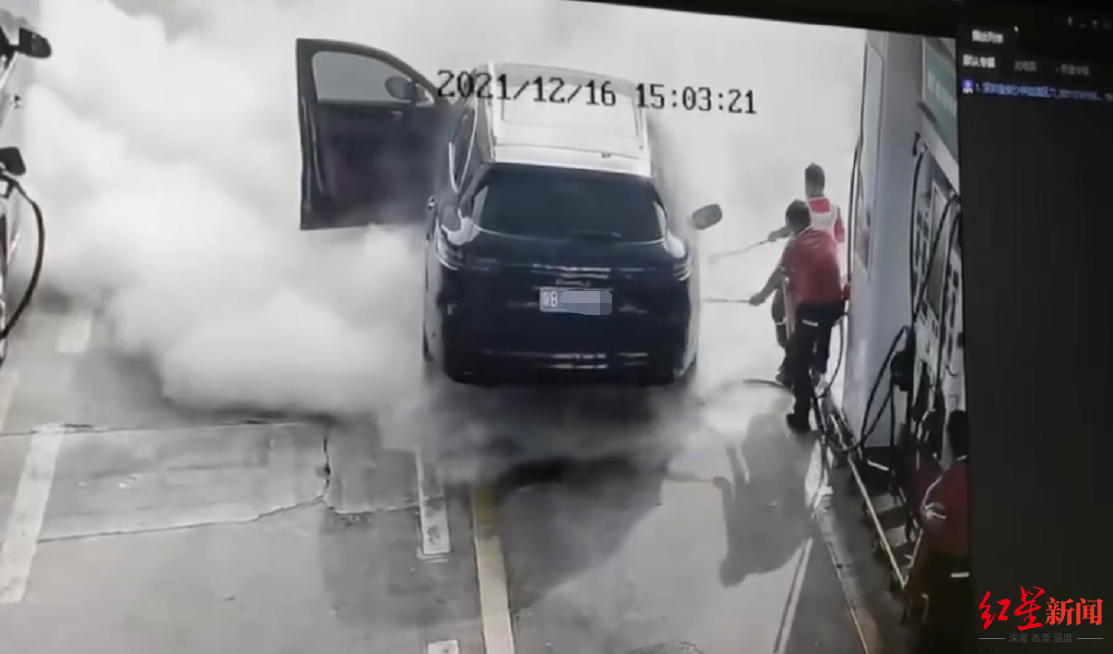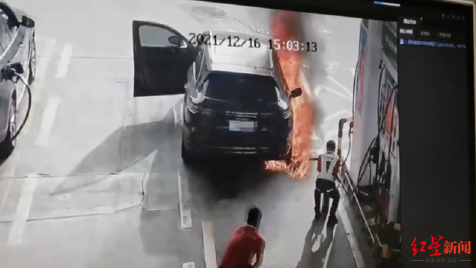 12月16日下午15时许,一辆粤B车牌的保时捷车在某加油站加油时,突然一男子拔出加油枪并朝正在喷油的加油枪点火,保时捷车以及加油枪瞬间燃起熊熊大火。所幸车内人员成功逃离,火势也被加油站工作人员迅速扑灭。这段视频在互联网上引发关注。