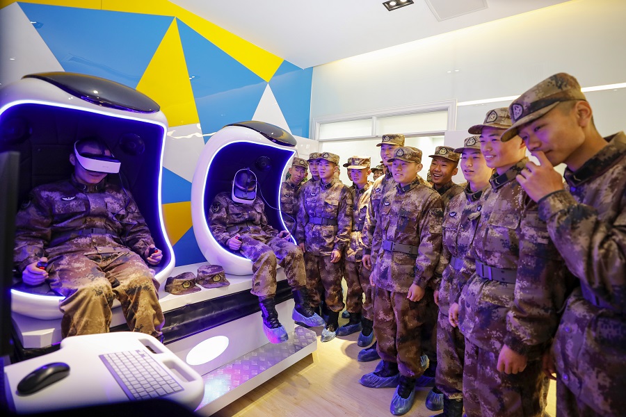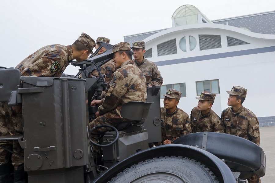 班长带领新兵们第一次亲身体验某型武器装备。王雨 摄