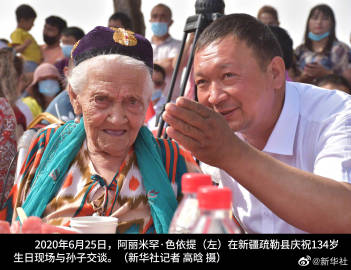 #我国最长寿老人去世#【#新疆135岁老人去世# 经历三个世纪 一家六代同堂】记者从新疆疏勒县委宣传部了解到,12月16日,新疆喀什地区疏勒县居民阿丽米罕·色依提在喀什去世,享年135岁。
