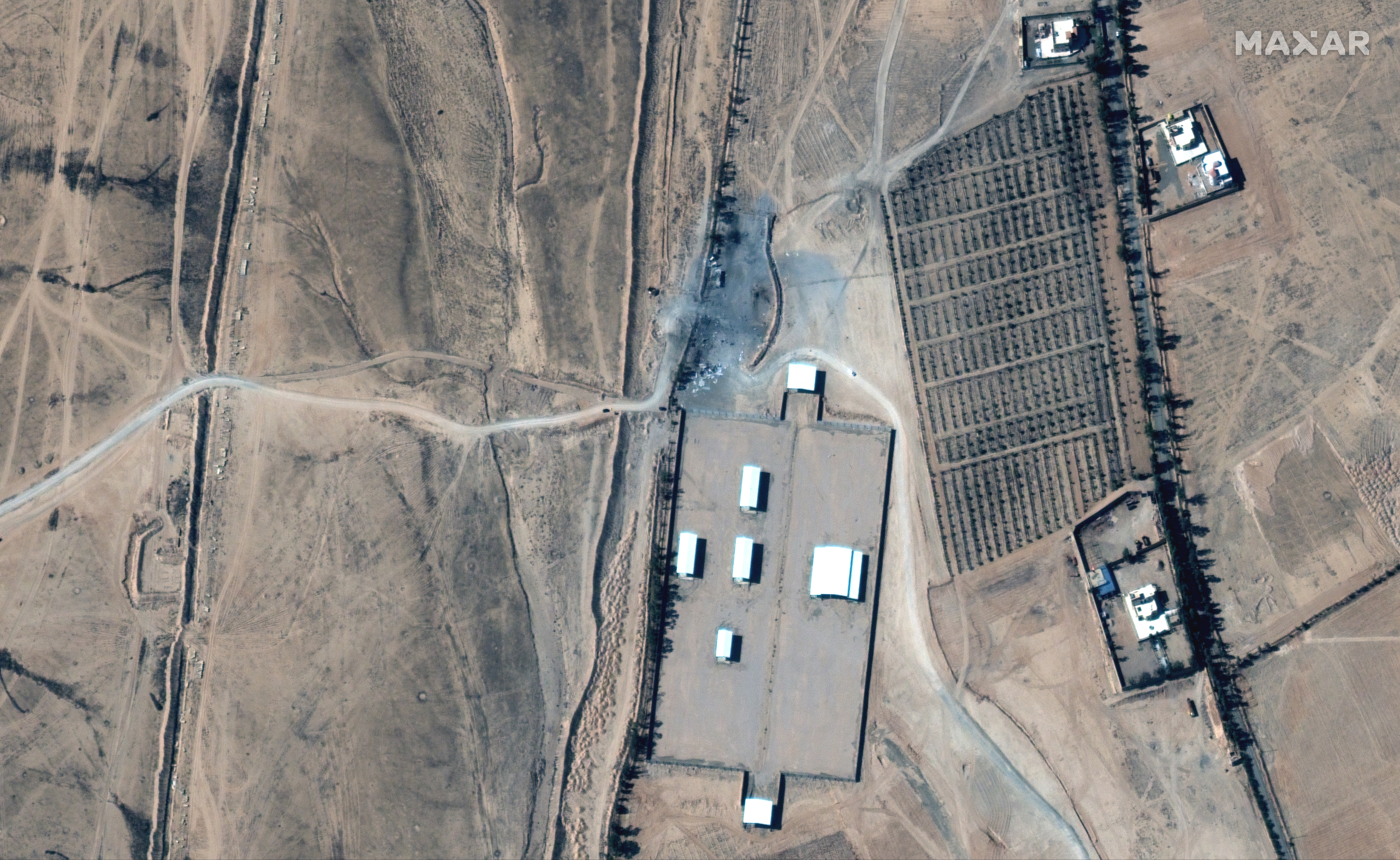 美国马克萨尔科技公司提供的卫星图片显示的是叙利亚东部边境遭空袭后的区域。美国国防部2月25日发表声明说,美军当天对位于叙利亚东部伊朗支持的民兵组织目标发动空袭。(新华社/美联)