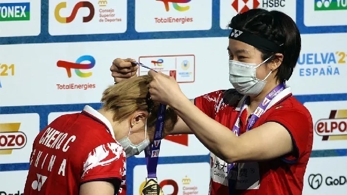 19日,在西班牙进行的羽毛球世锦赛女双决赛中,中国组合陈清晨/贾一凡2-0击败韩国组合李绍希/申昇瓒,夺得冠军。