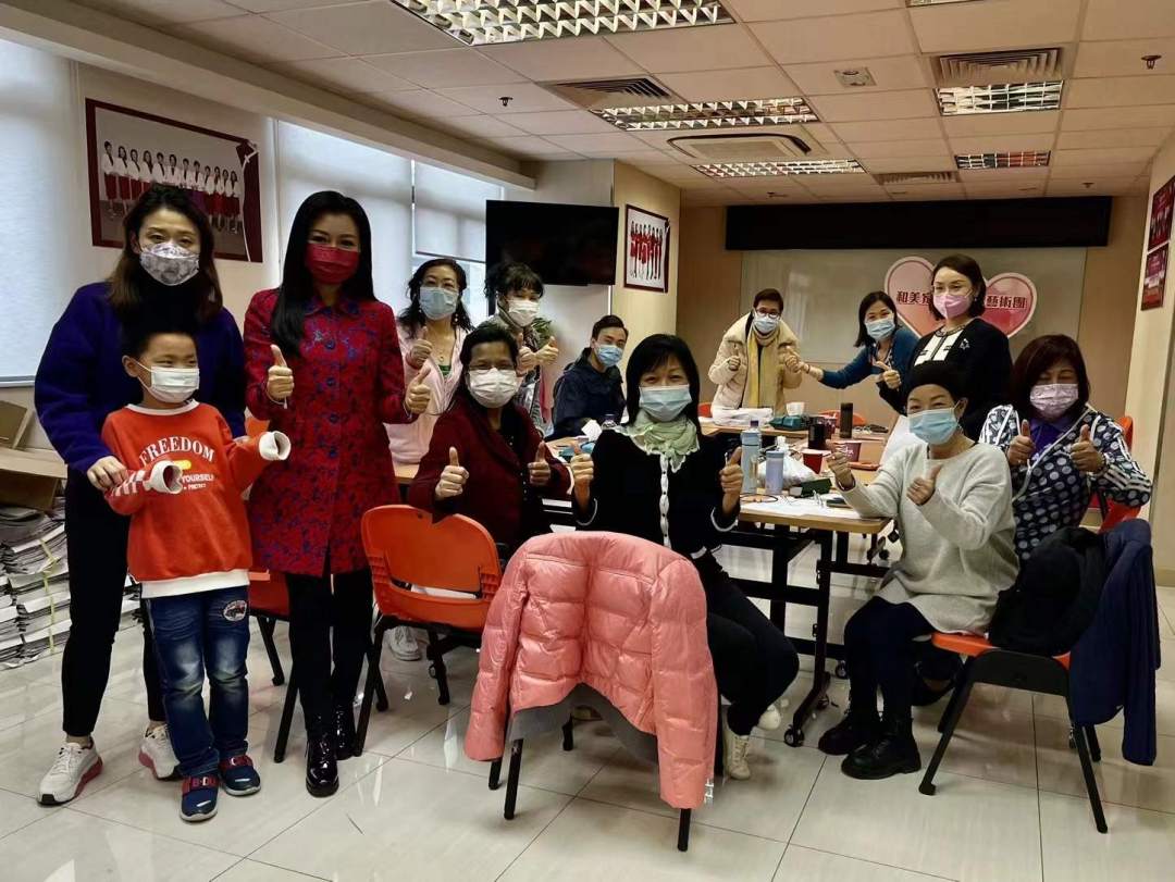 香港特区选举委员会基层社团选委、香港岛妇女联会主席金铃与联会义工一起持续观察选举情况,鼓励市民积极参与。(照片由受访者提供)