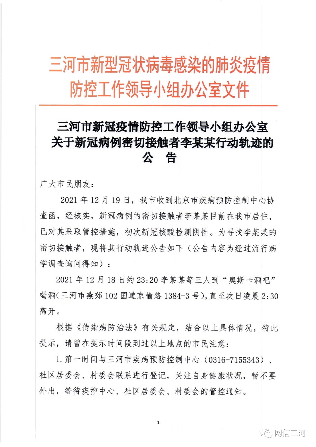 河北三河发现1例北京病例密接者,曾去酒吧