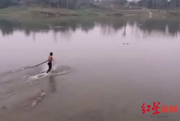 “幺妹,醒醒。”赵世荣一边游一边喊。大约游出了三十米,女子抓住了竹竿,赵世荣用力向后拉,试图将其带到岸边。可能是落水者太过惊慌,突然呛了一口水,赵世荣见状放缓了回游的速度。