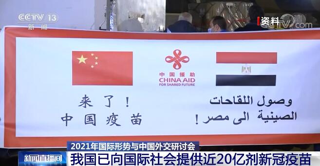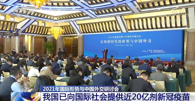 央视网消息:2021年国际形势与中国外交研讨会今天(12月20日)在北京举行。中国外交部长王毅在研讨会开幕式上表示,面对世纪疫情延宕反复,中国开展卓有成效的抗疫外交,彰显说到做到的大国担当,迄今已向120多个国家和国际组织提供近20亿剂疫苗,成为对外提供疫苗最多的国家。