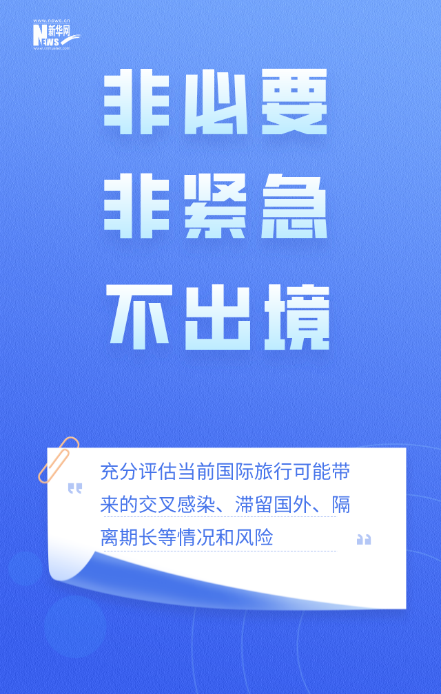 两节将至,可能会出现人员跨境旅行需求增加的情况。对此,移民管理局边防检查管理司司长刘海涛提醒公众,当前,国际疫情起伏反复,奥密克戎变异株已在多国扩散传播,近1个月来,全球新增确诊病例环比上升30%多。公众要密切关注境外疫情信息和前往国的入境管制要求,充分评估当前国际旅行可能带来的交叉感染、滞留国外、隔离期长等情况和风险,关爱自身健康安全,做到非必要非紧急不出境。( 文案/海报设计:王莹 根据国务院联防联控机制新闻发布会内容梳理 )