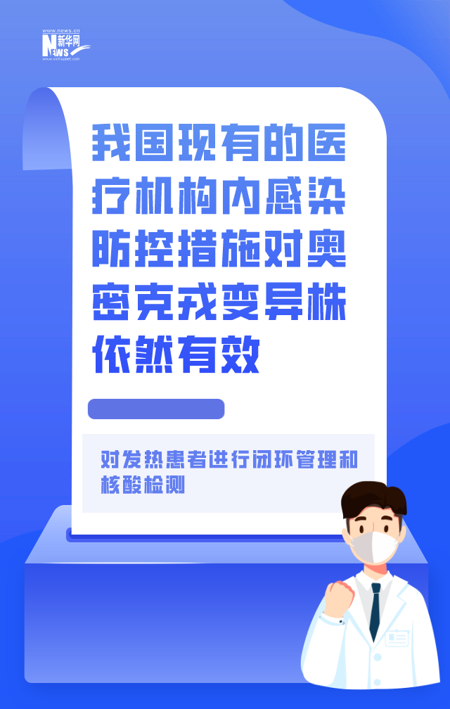 雷正龙同时强调,我国现有的医疗机构内感染防控措施对奥密克戎变异株依然有效,在医疗机构内感染防控工作中,仍然要坚持落实现有的防控措施。