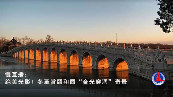 【慢直播:绝美光影!冬至赏颐和园“金光穿洞”奇景】每年冬至前后,落日光辉穿过颐和园十七孔桥,呈现壮丽景观,俗称“金光穿洞”。21日,#新华社直播#通过5G技术实时采集颐和园十七孔桥“金光穿洞”动态美景,带你身临其境体验绝美光影。 新华社的微博直播