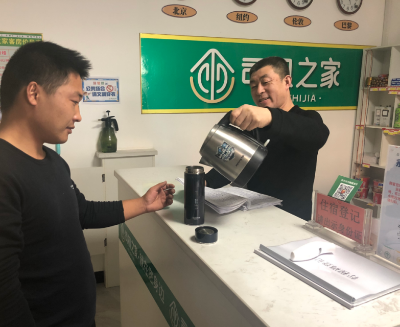 在永正司机之家,老板为货车司机提供热水。(辽宁省交通厅供图)