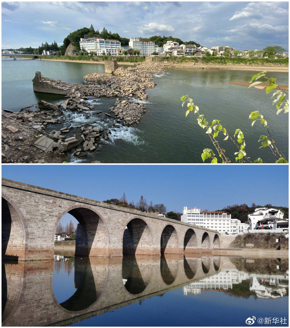 【黄山被冲毁的明代镇海桥修缮竣工】安徽省黄山市有480余年历史的镇海桥去年7月被洪水冲毁。同年11月启动修缮,截至目前修缮工程通过竣工验收,达到恢复通行条件。作为全国重点文物保护单位、徽州人民的“独家记忆”、当地人心心念念的屯溪“老大桥”——镇海桥迎来新生。