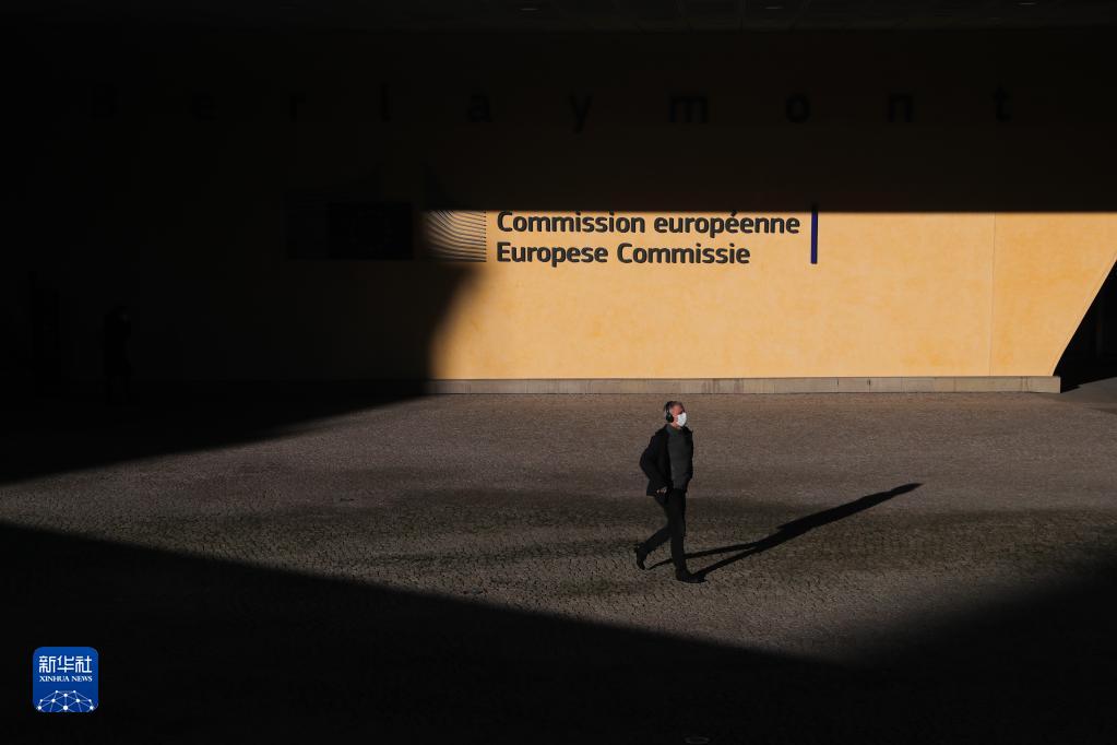 12月21日,一名戴口罩的男子经过比利时布鲁塞尔的欧盟委员会大楼。