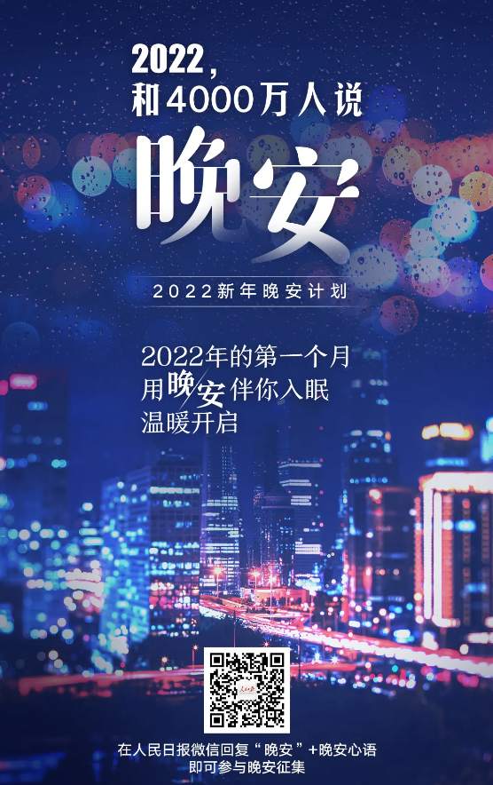 关注人民日报微信并在对话框回复“晚安”即可参与2022新年晚安计划!