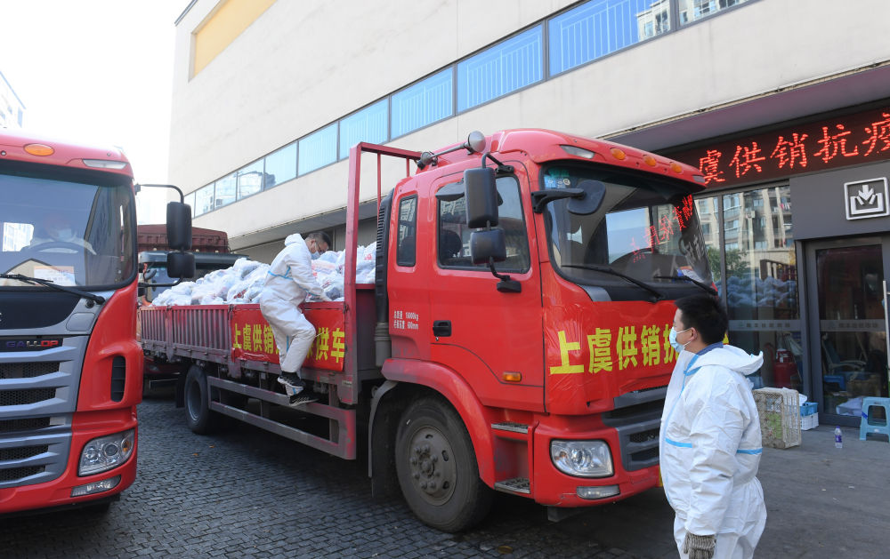 此时的上虞,全城封控,大型经营单位就地征用为物资保障单位。以上虞为中心,周边县市的支援物资源源不断地运送进来,由这些中转站发放到街道、社区,最后送到每一户居民门口。一项巨大的工程!抵虞次日,我把镜头对准了这一物资保障体系,发回了一组保供应的报道。