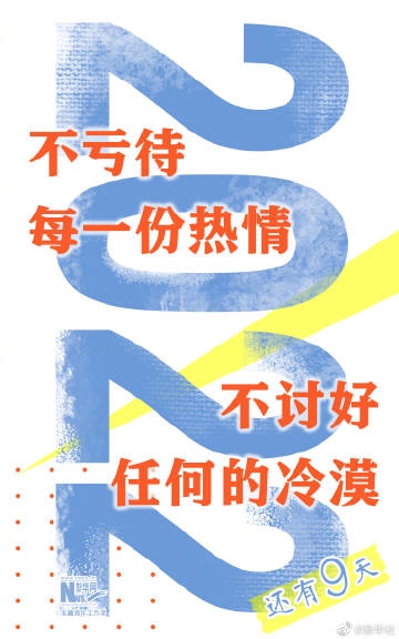 【#2022年倒计时文案#】转眼,#2021只剩9天了#,9天后,我们即将迎来崭新的2022。小编精心为大家挑选了9句跨年文案制作了9张倒计时海报供大家跨年使用,你喜欢里面的哪一句文案呢?请不必客气,自行取用!