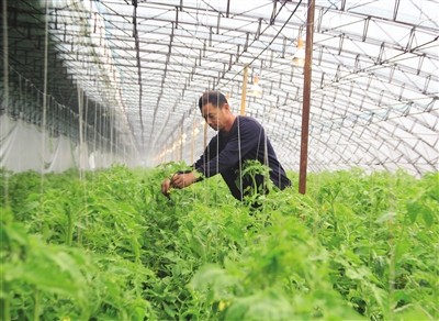 现在,于耕水把以前1米多高的、用竹木搭建的旧棚全部提升为2米左右高的、用钢管建造的新式大棚,分门别类地种植着各种蔬菜,黄瓜、彩椒、绿叶菜,当然还有不愁卖的西红柿。“我们的菜都是有机的,不打农药,每天早晨运到市区蔬菜批发市场后,很快就会被抢购一空。”于耕水说着,摘下一根黄瓜,用手捋掉表面的刺,递给记者,“尝尝,看味道咋样?保你口感脆甜。”